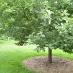 While keeping water in the soil is important, you also need to think about what fruit trees need. Young fruit trees especially shouldn’t compete with other plants. Bill suggests: