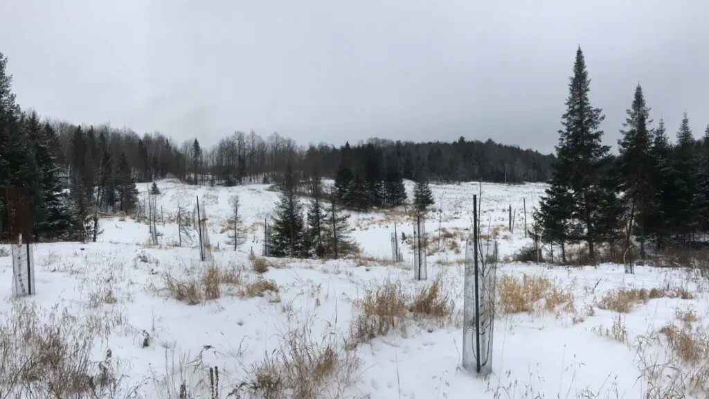 So if you have older trees or if you live in a snowy climate you can make your own tree guards using a roll of window screening and a stapler or some wire.